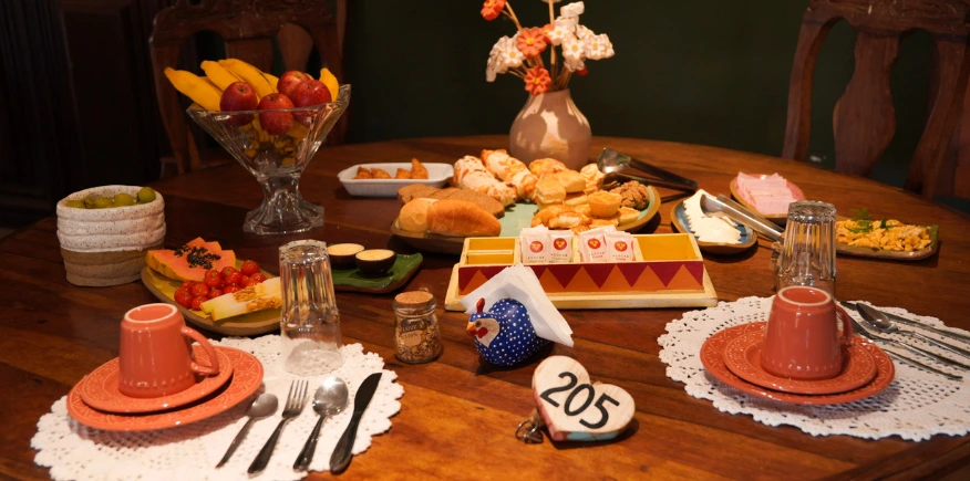 Na Pousada Maria Barbosa, o dia começa do jeito que todo mineiro gosta: com cheiro de café passado na hora e mesa farta feita com carinho.